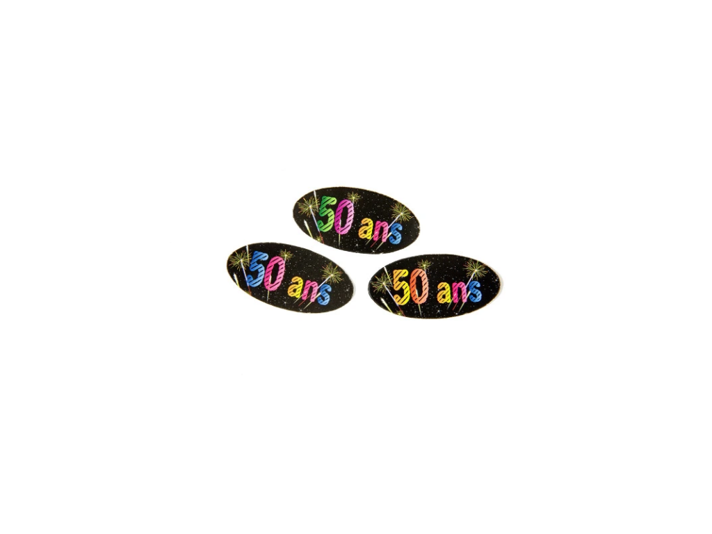 Sada 80 papierových konfiet pre jubilejné oslavy s motívmi 30, 40, 50 a 60 rokov. Oválne konfety s čiernym pozadím a farebnými nápismi s ohňostrojom. Rozmer každej konfety 4x2 cm. Ideálne na dekoráciu stola pri narodeninových oslavách a jubilejných večierkoch.