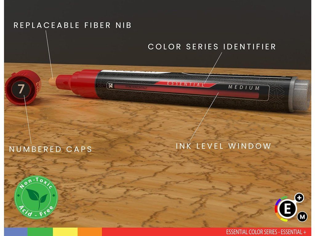 - Více povrchů: Vysoce pigmentovaný akrylový inkoust poskytuje krycí vrstvy na kameni, skle, dřevě, kovu, textilu, porcelánu, plátně, plastu, papíru a dalších materiálech.