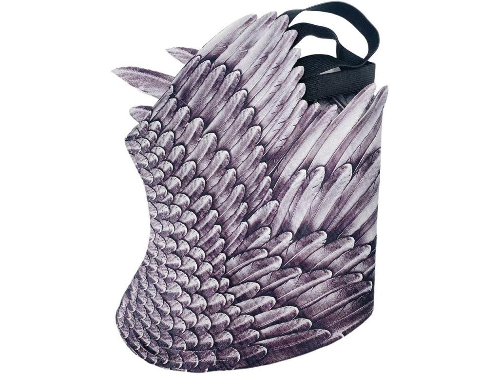 - Design: klasický „andělský“ tvar s potiskem ptačích per; barva černá + šedá (může se mírně lišit podle nastavení displeje).