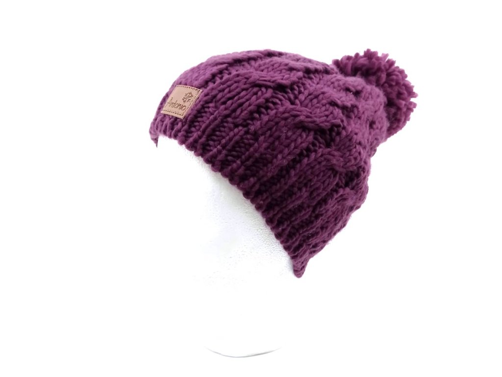 Antonio pletená čiapka s brmbolcom, fialová Nové