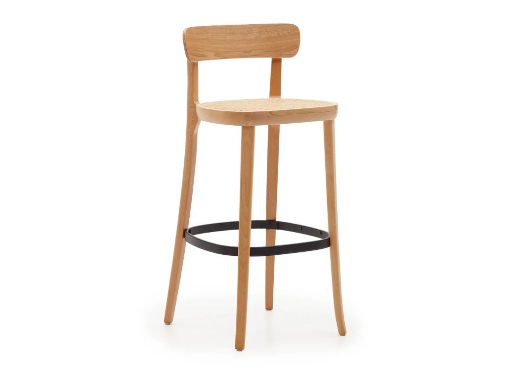 Nechajte sa oslniť jednoduchosťou tejto barovej stoličky Romane od značky Kave Home. Vzhľadom k prírodným materiálom - konkrétne bukovému drevu a jaseňovej dyhe , dá vyniknúť očarujúcemu sfarbeniu a štruktúre dreva.