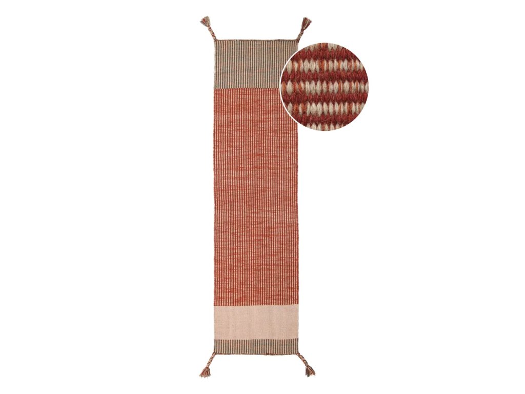 Behúň Anu, ručne tkaný, vlnený, bouclé, bez vlasu, so strapcami, oranžový, 60x200 cm Rozbalené