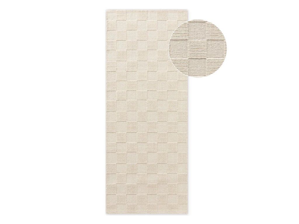 Ručne tkaný, vlnený, bez vlasu, krémový, 80x200 cm.