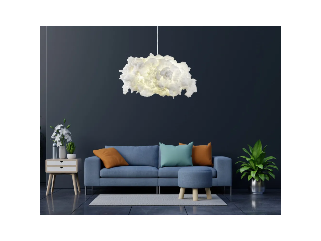 S textilným tienidlom, biele, 45x60 cm, výška 80 cm. Závesné svietidlo Serenity od značky Opviq lights. Unikátny tvar pripomínajúci obláčik dodá priestoru hravosť a ľahkosť.