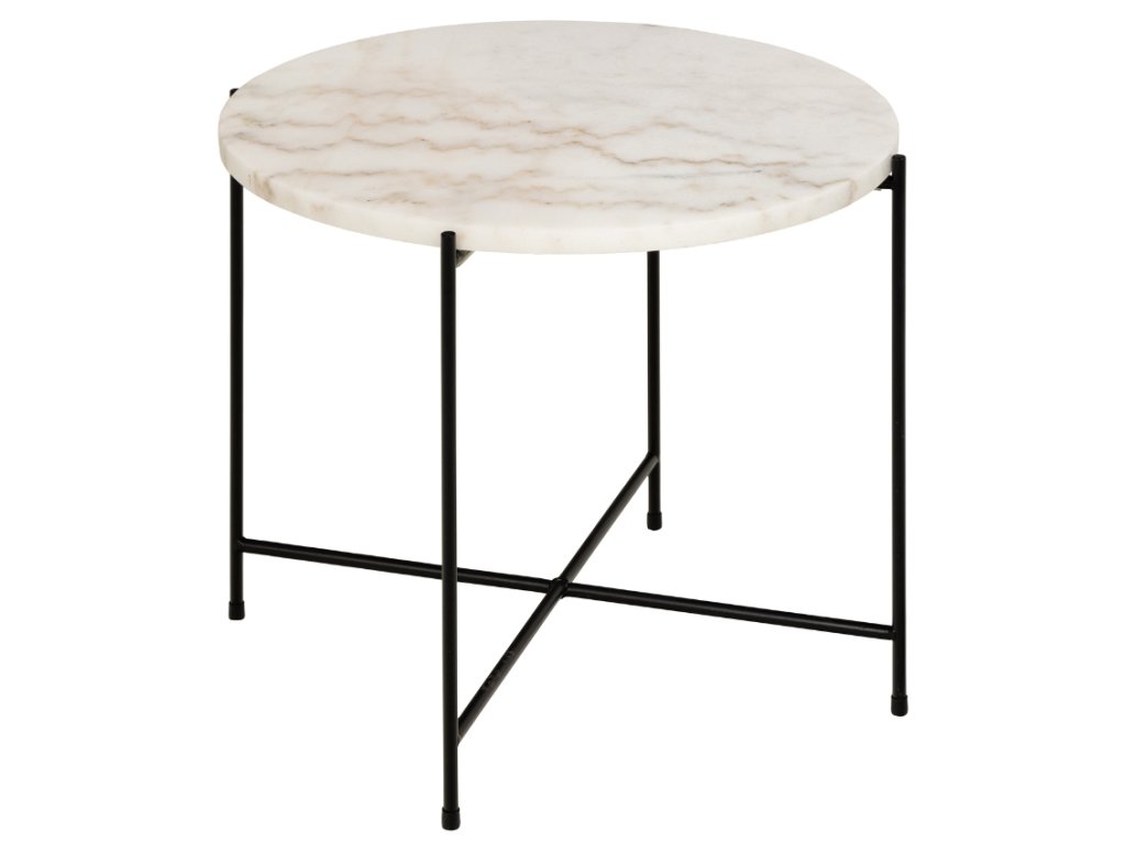 Predstavujeme vám stolík Avila od značky Scandi. Tento okrúhly odkladací stolík je tvorený mramorovou doskou a čiernou kovovou podnožou.