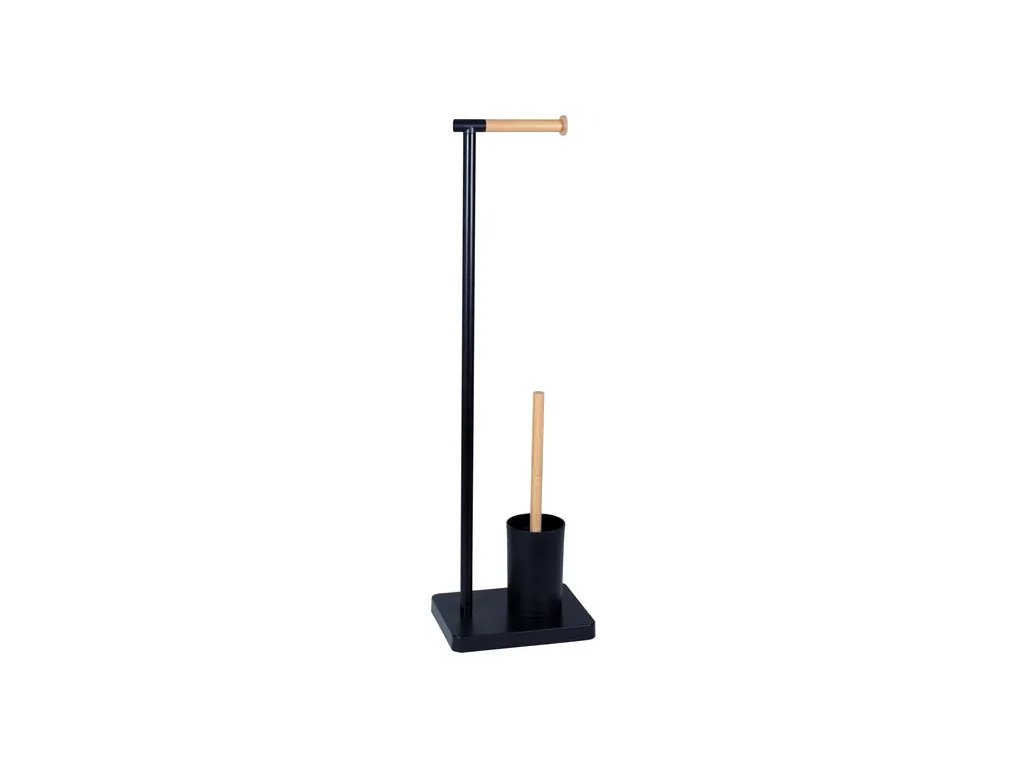 BISK Erga Plain, voľne stojaci držiak na WC papier s toaletnou kefou, čierna matná-hnedá Nové