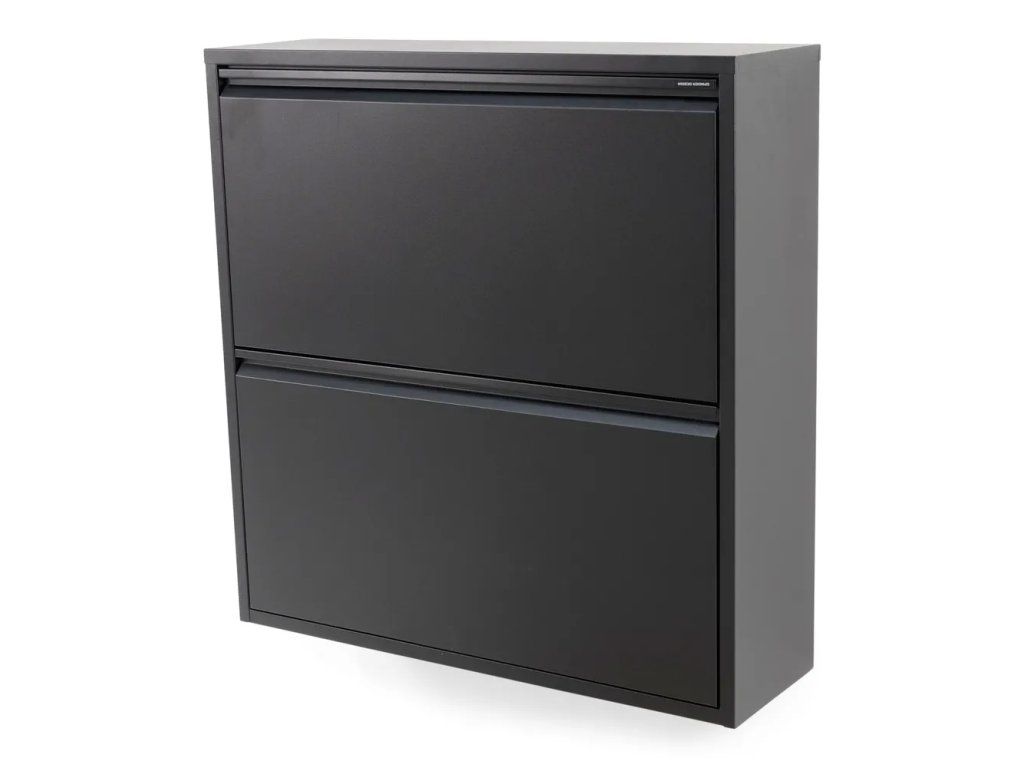 Praktický kovový botník Billy od Spinder Design v čiernej farbe s výklopným mechanizmom. Pojme až 12 párov topánok a vďaka kompaktným rozmerom 75x77,5x22,5 cm sa hodí aj do menších priestorov. Vyrobený z kvalitnej ocele s práškovou povrchovou úpravou pre dlhú životnosť. Nosnosť až 75 kg.