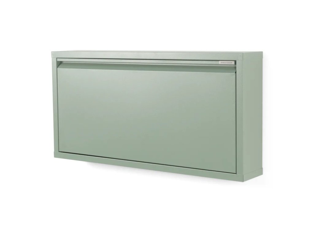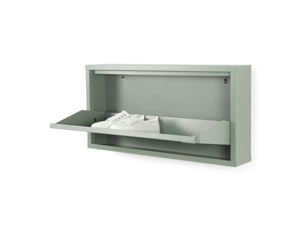 Výklopný, kovový, povrchová úprava: práškový lak, zelený/sivý, počet párov topánok 3, šírka 75 cm, výška 37,5 cm, hĺbka 12,5 cm.