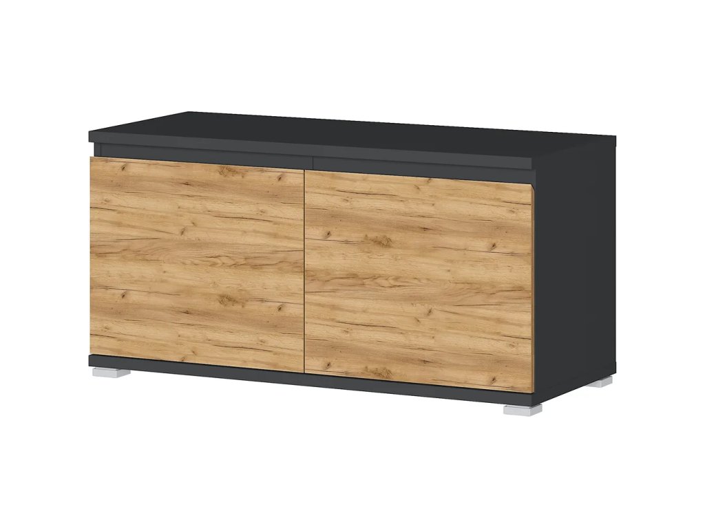 S lavicou, v dekore duba, z drevotriesky, povrchová úprava: lamino, v prírodnej farbe, počet párov topánok 8, šírka 96 cm, výška 52 cm, hĺbka 40 cm. Vrchná doska poškodená viď foto.