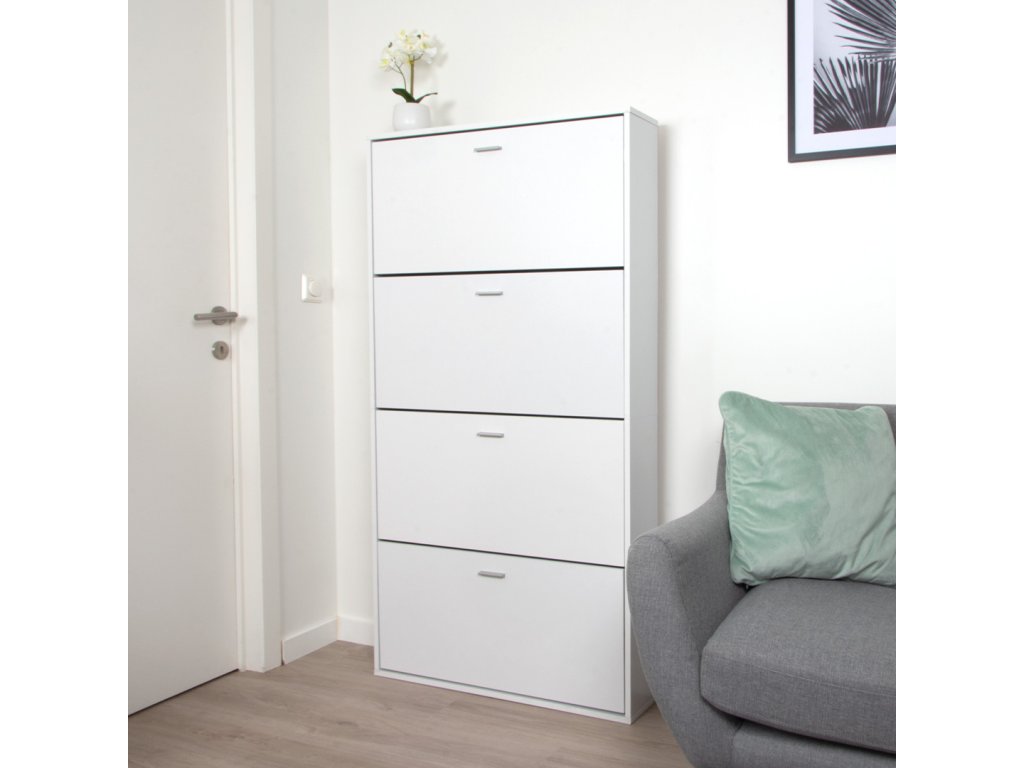Koniec topánkam, ktoré sa len tak povaľujú, s botníkom Maribor od Milton & Oldbrook. Tento biely botník je kompaktný a praktický so štyrmi dvierkami.