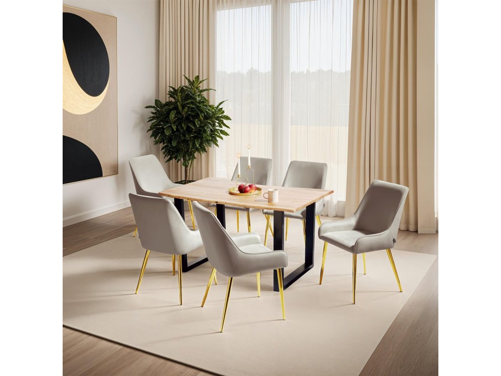 Měkké čalounění s vysoce hustou pěnou zaručuje prvotřídní pohodlí – i při dlouhých večeřích s přáteli a rodinou. V kombinaci s hebkým sametovým potahem získávají tyto židle zvláště luxusní pocit při sezení - perfektní volba pro lidi s citem pro styl.