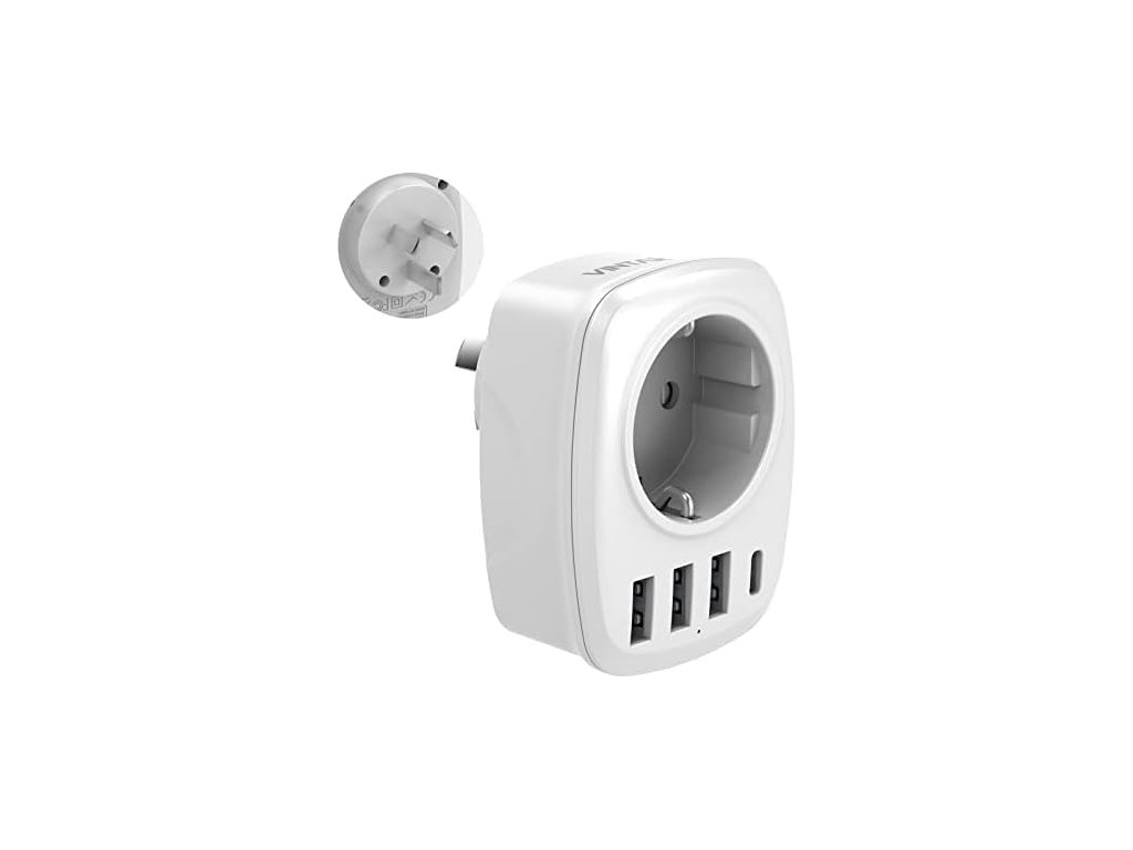 - Tento adaptér adaptéru (2,37 * 3,07 * 2,43 palce) lze použít kdekoli v interiéru, je kompaktní a snadno se přenáší a lze jej uložit do batohu nebo kufříku. Koncept rozhraní 5 v 1 splňuje vaše cestovní potřeby a šetří spoustu místa v zavazadlech, aniž byste s sebou museli nosit další adaptéry nebo elektrické zásuvky.
