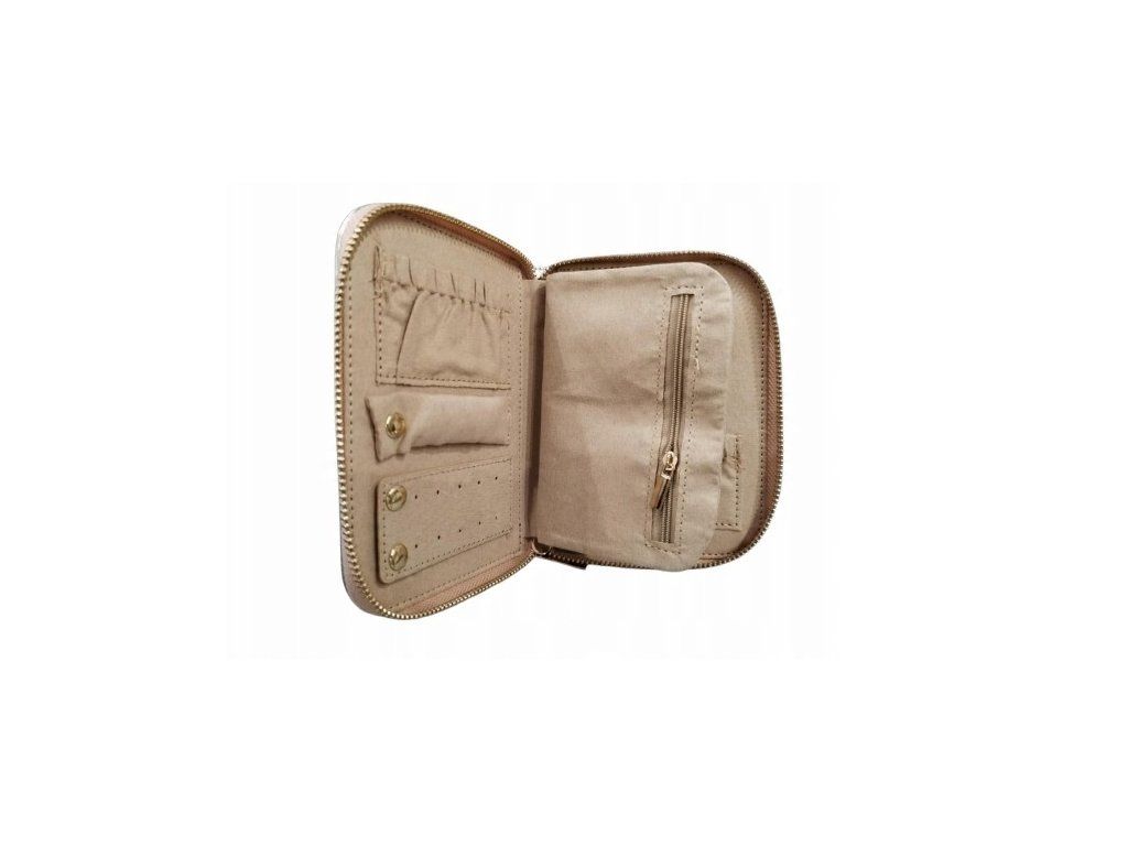 Cestovní organizér na šperky LEVNO je praktické řešení pro všechny, kdo chtějí mít své šperky během cest bezpečně uložené a přehledně uspořádané. Díky kompaktním rozměrům 17x13x3 cm se snadno vejde do každého zavazadla.