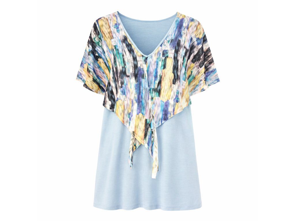 Štýlová dámska blúzka Swish vo svetlo modrej farbe s ozdobným volánom. Vyrobená z príjemného materiálu (94% iné vlákno, 6% spandex) s voľnejším strihom bez rukávov. Ideálne na letné dni, do práce aj na elegantné príležitosti.