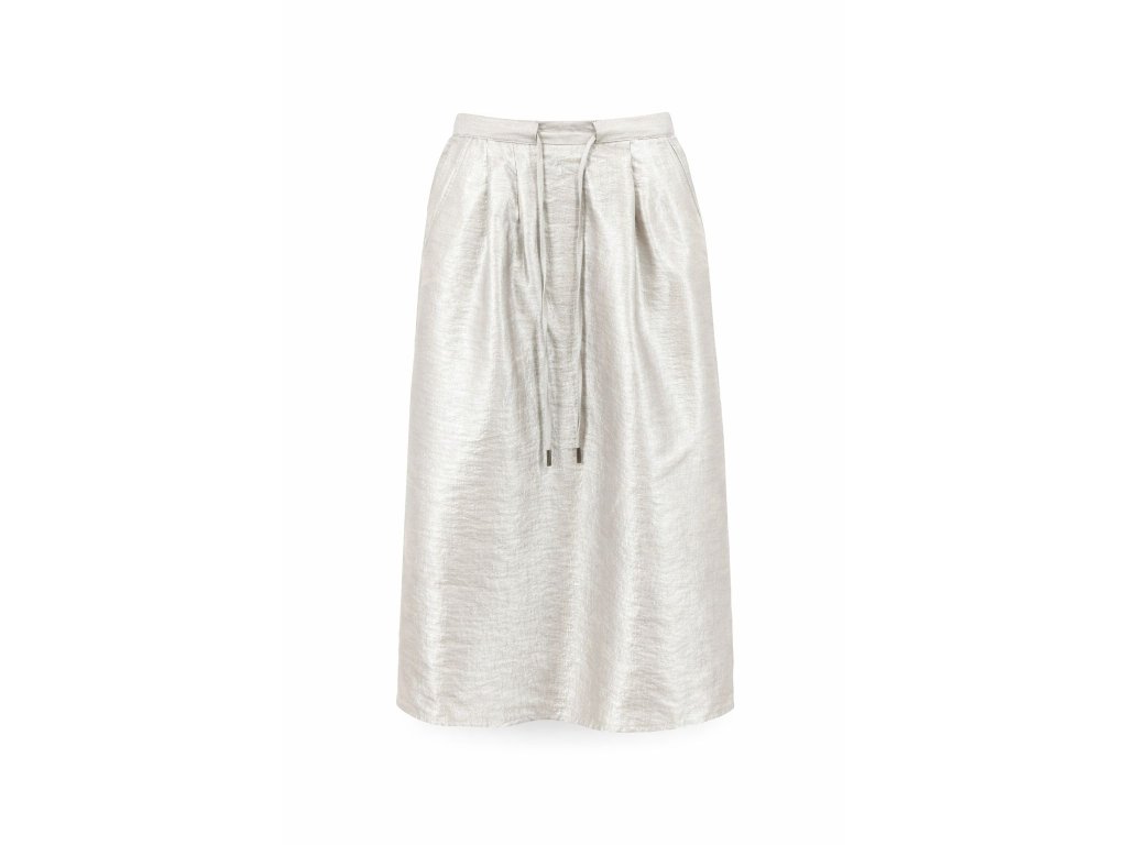Materiálové složení: 68% viskóza, 19% polyamid, 13% polyester. Dostupné velikosti: 34, 36, 40, 42, 44. Barva: metalická stříbrná.
