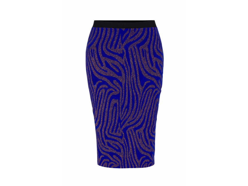 Elegantná dámska sukňa CKS v tmavo modrej farbe s luxusným medeným ligotom. Vyrobená z kvalitnej zmesi 67% polyester, 18% lurex, 12% elastan a 3% viskóza pre maximálne pohodlie a priliehavý strih. Elastický materiál sa dokonale prispôsobí postave. Dostupná vo veľkostiach XS-XXL, ideálna na večerné príležitosti i každodenné elegantné nosenie.