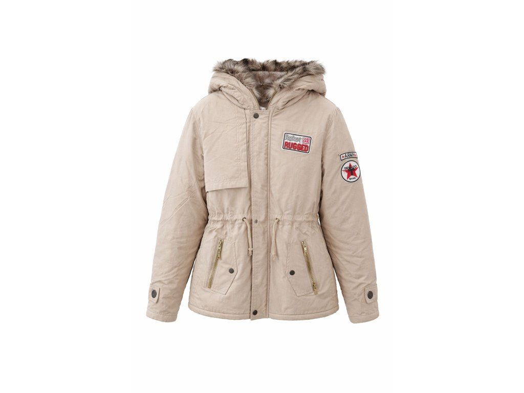Štýlová dámska zimná bunda v elegantnej béžovej farbe od značky LEVNO. Teplá a pohodlná bunda veľkosti S je ideálna pre chladné dni. Kvalitné spracovanie zaisťuje dlhú životnosť a skvelý vzhľad. Perfektná voľba na každodenné nosenie v zimnom období.