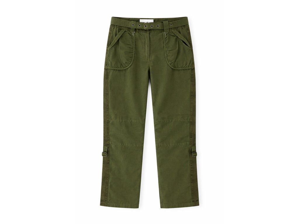 Štýlové dámske nohavice WESTLORD v trendy zelenej farbe s elegantným menčestrovým zdobením po stranách. Vyrobené zo 100% bavlny pre maximálne pohodlie a priedušnosť. Dostupné vo veľkostiach S až XXL. Ideálne na voľný čas aj casual outfity.