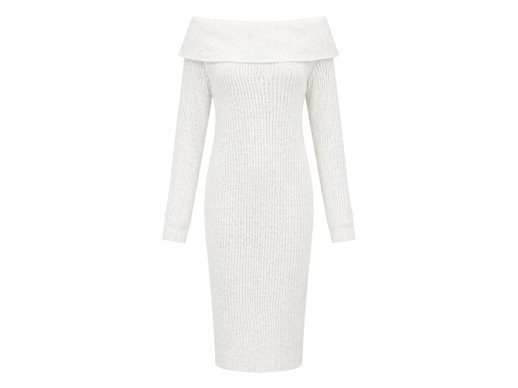 Dámske módne pletené šaty s lodičkovým výstrihom z kolekcie značky LPB Woman.