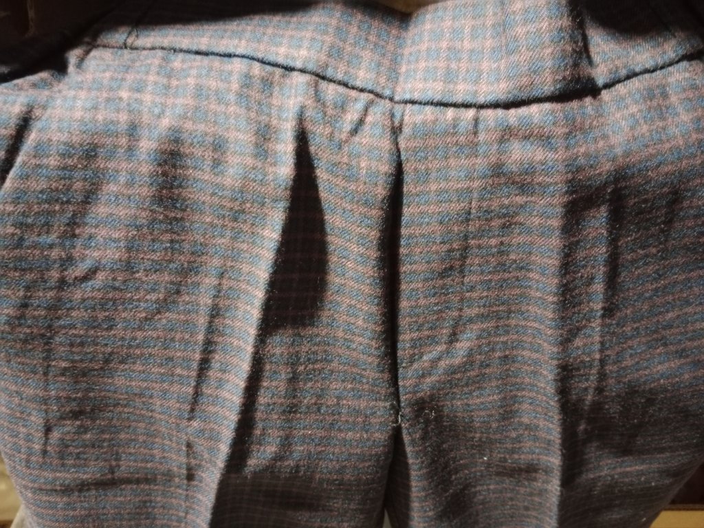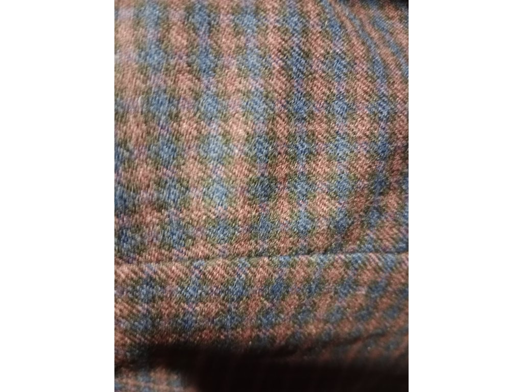 Dámske slim - fit nohavice s kockovaným vzorom v tmavo modrej a hnedej farbe
