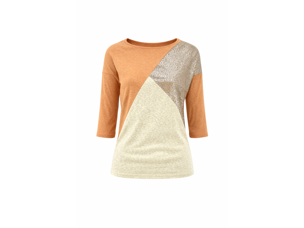 Dámske tričko s 3/4 rukávom Odemai - béžová/oranžová s flitrami Nový tovar