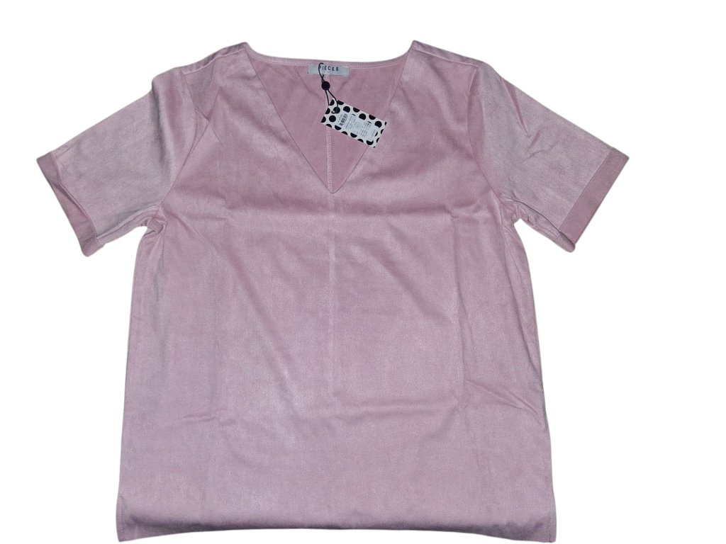 Pohodlné dámské tričko v lososové barvě by nemělo chybět ve vaší šatní skříni. Tričko má výrazný výstřih do V.