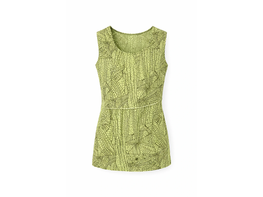 Elegantný dámsky top bez rukávov od značky Animale v zelenej farbe so vzorom v hnedej. Originálne zapínanie na gombíky na zadnej strane dodáva topu jedinečný vzhľad. Vyrobený zo 100% viskózy pre maximálne pohodlie nosenia. Ideálne pre letné dni aj spoločenské príležitosti. Dostupný vo veľkosti S.