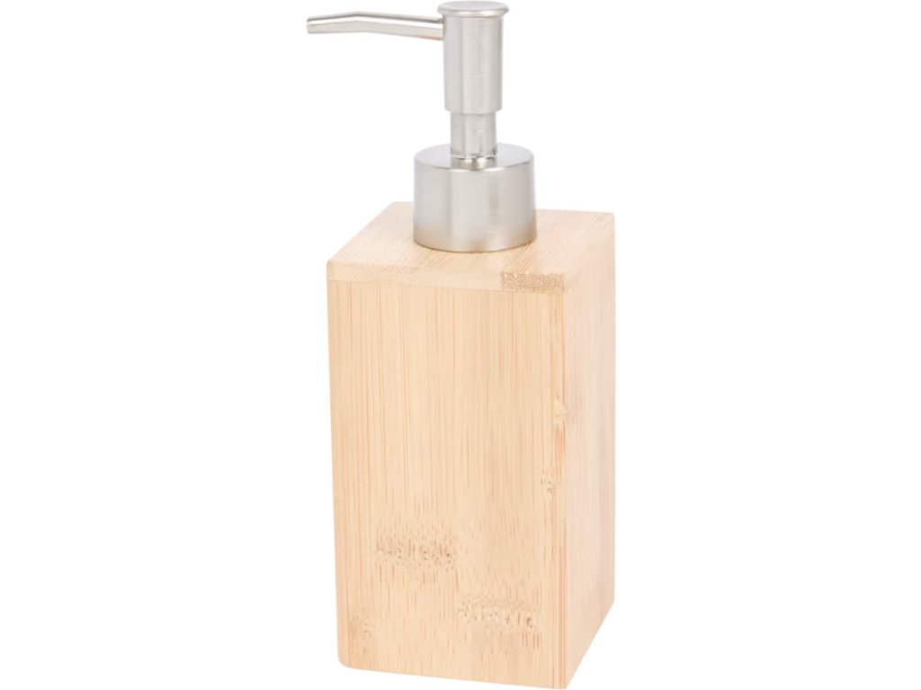 Obdĺžnikový, klasický a vkusný dávkovač tekutého mydla vyrobený z bambusu.