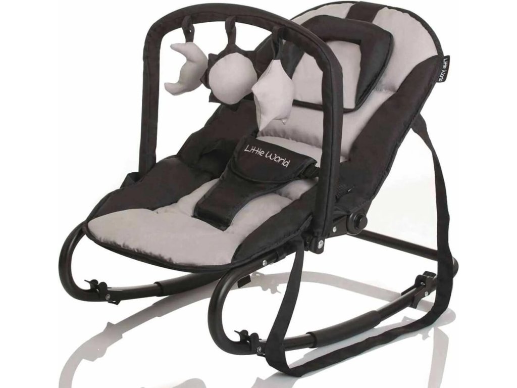 Houpátko je díky pevnému rámu velmi stabilní a robustní. Díky polyesterové tkanině je velmi útulná. Díky nastavitelnému opěradlu si děti vždy najdou tu nejpohodlnější polohu. K dispozici je také hrací oblouk s odnímatelnými figurkami, se kterými si vaše dítě může hrát. Houpátko zůstává bezpečné a stabilní díky protiskluzovým chráničům. Součástí balení je navíc popruh pro snadné přenášení.