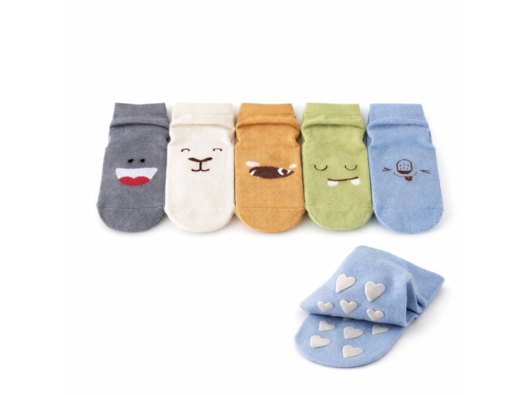 Bezpečné, pohodlné a roztomilé ponožky, které zajistí dětem pevný krok i pohodlí po celý den. Protiskluzová spodní část pomáhá předcházet pádům po hladkých podlahách.