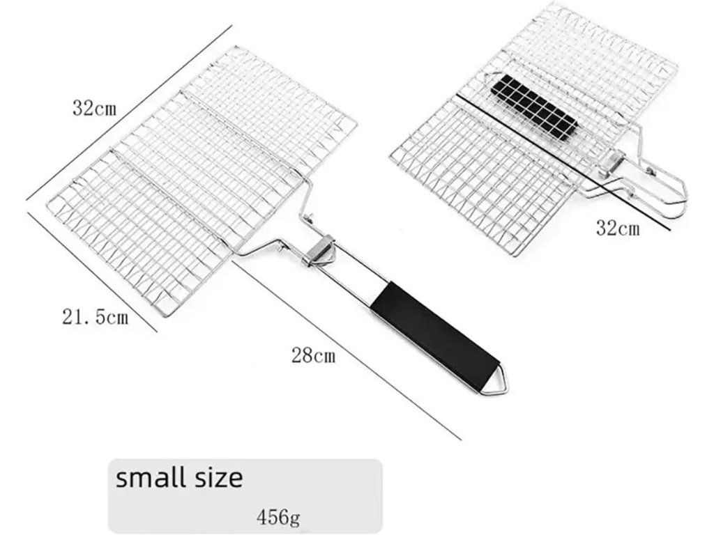 Praktický grilovací rošt vyrobený z nerezové oceli 304, určený pro grilování žeber, pečení, kuřat, klobás, steaků i zeleniny. Ideální na venkovní grilování, táboření, pikniky nebo zahradní párty – zajišťuje rovnoměrné propečení bez přilepení a usnadňuje manipulaci s menšími kousky jídla.