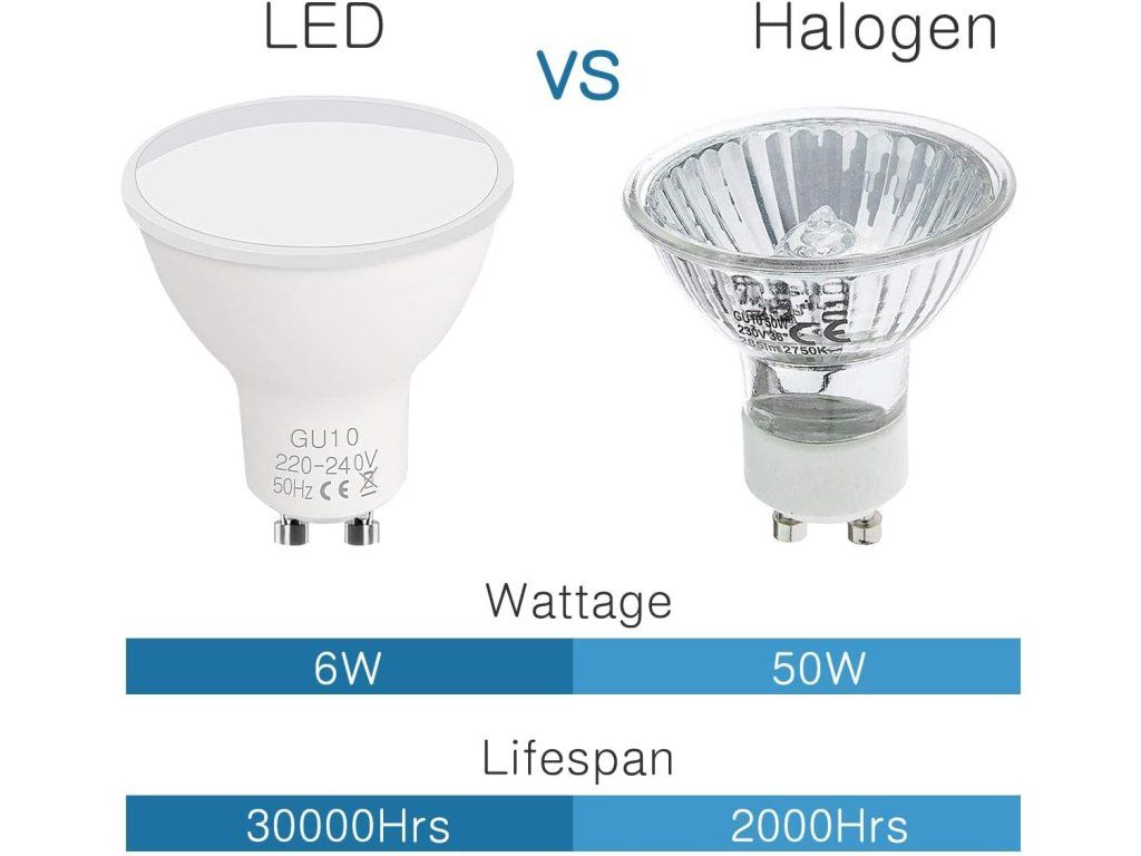 - Úspora energie: 6 W spotřebou nahradí 50 W halogen, až o 90 % nižší spotřeba.