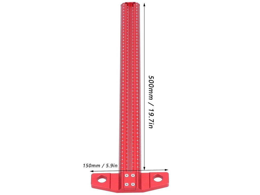Obsah balení: T-pravítko 600 mm, odnímatelná zadní lišta, montážní nářadí (šrouby a klíč). Technické údaje: materiál: hliníková slitina; délka: 500 mm; přesnost: 1 mm
