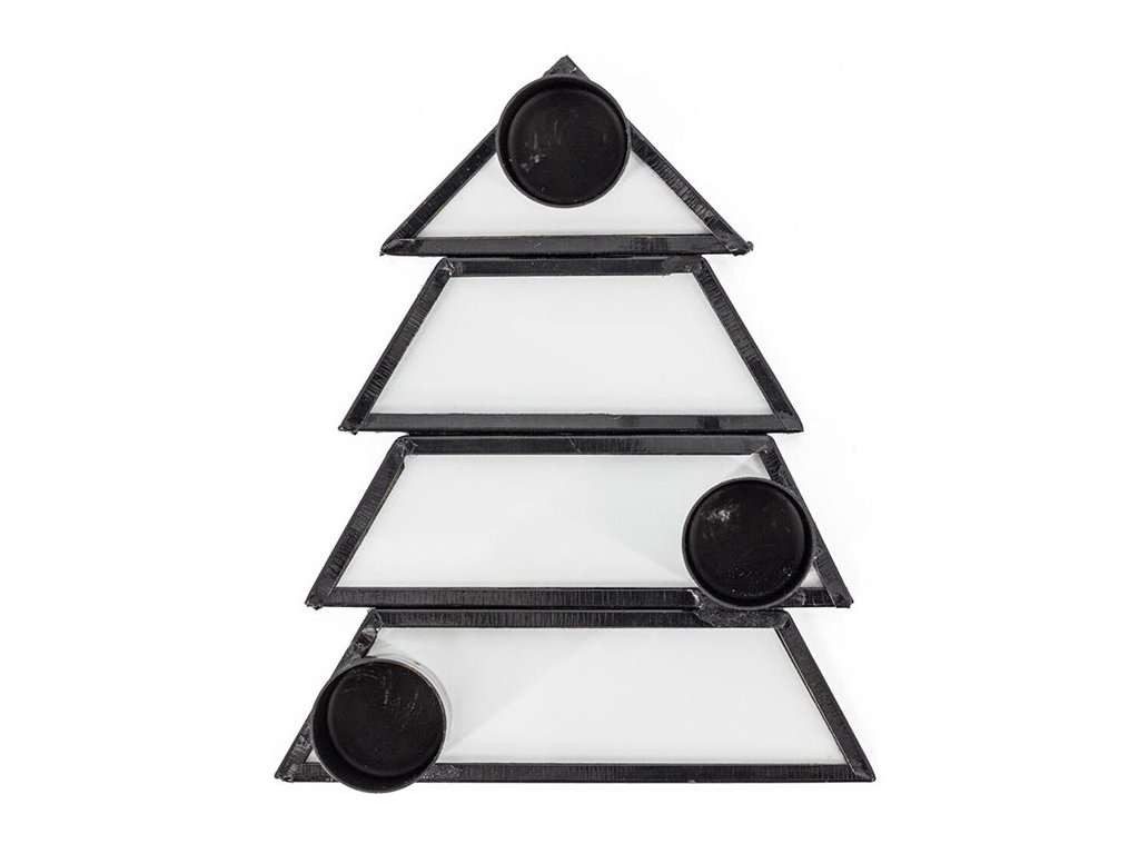 Robustní černý stojan na svíčky ve tvaru (vánočního) stromečku s místem pro 3 jídelní svíčky. Ať už svíčky zapálíte nebo ne, na vašem konferenčním stolku, příborníku nebo na jídelním stole (o Vánocích) to bude opravdový poutač. Tento svícen je vyroben z kovu a skla a má rozměry 3x13x11cm