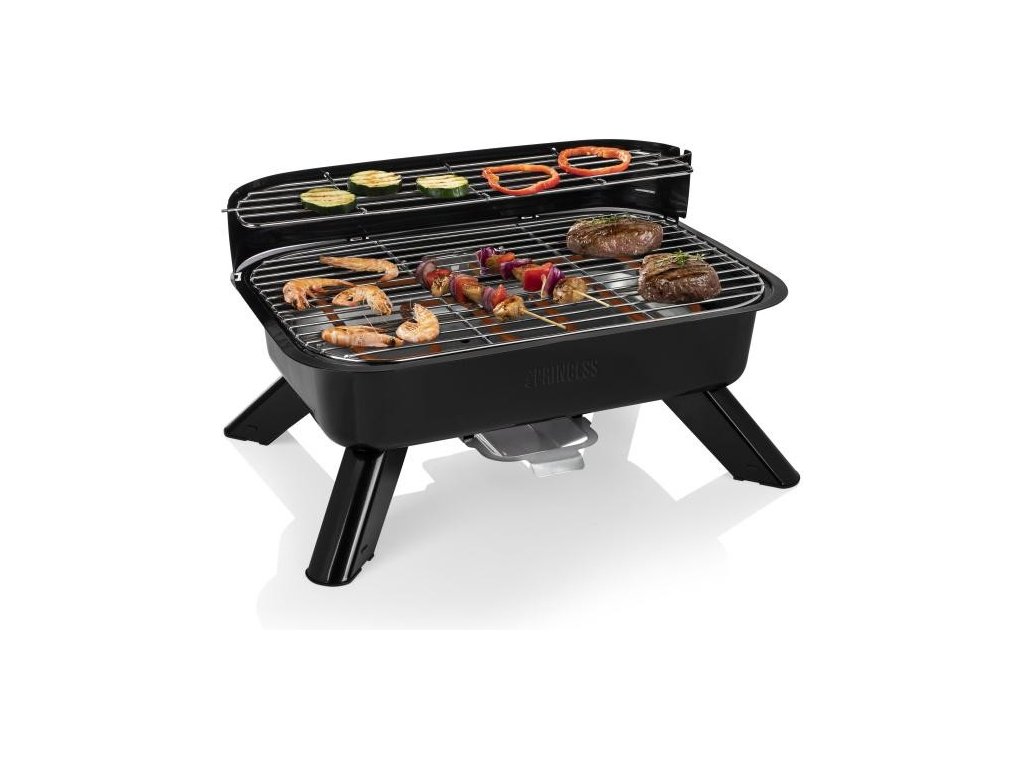 Je vždy připraven k práci a může být použit jako stolní gril. Disponuje protiskluzovými nožičkami, světelnou indikací provozu a zadním štítem, který grilované ingredience chrání před větrem. Méně nepříjemných pachů a kouře. Součástí balení je grilovací mřížka. Délka napájecího kabelu je 1m, rozměry grilovací plochy jsou 44 x 28,5 cm. Je vhodný pro kempování.