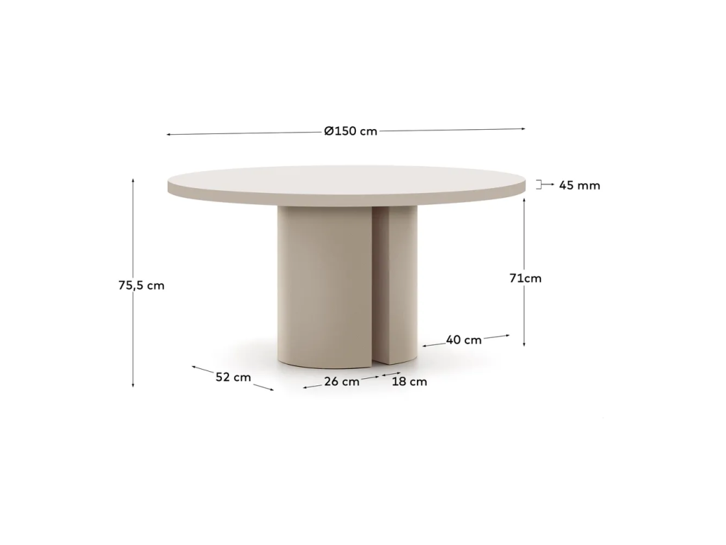 Okrúhly jedálenský stôl Kave Home Nealy môže vďaka dvom polohám podnože jednoducho zmeniť svoj dizajn! Podnož má totiž podobu rozpoleného valca.