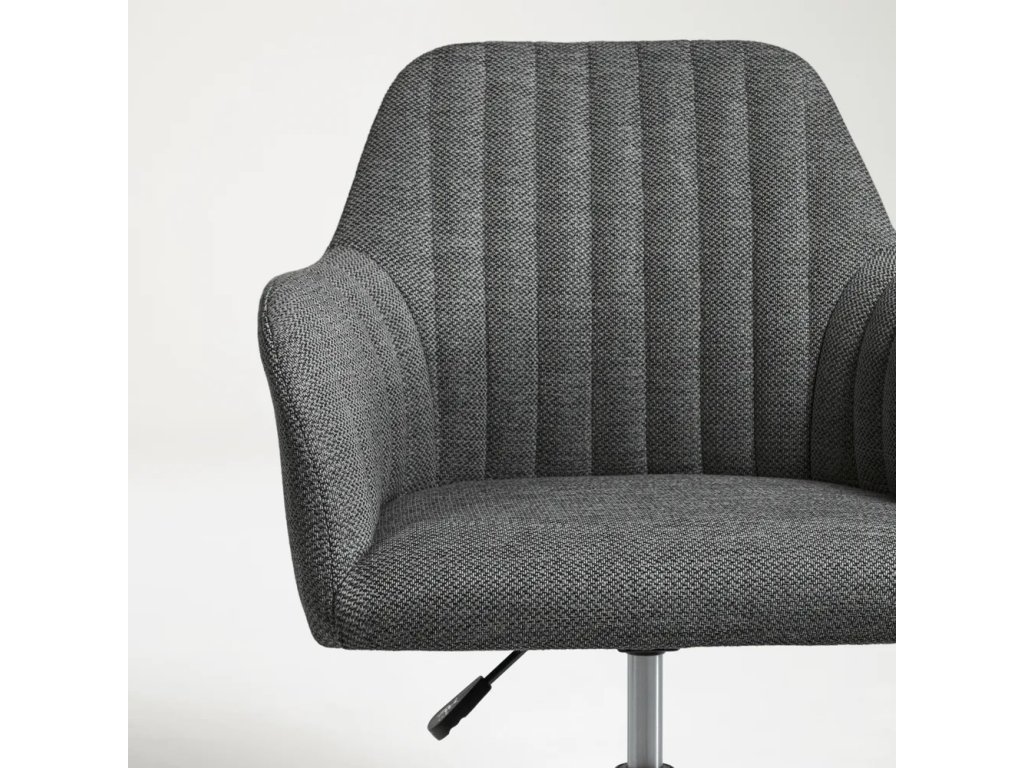 Čalúnená, pojazdná / s nastaviteľnou výškou / s lakťovými opierkami, tmavo šedá, nosnosť 130 kg, výška sedadla 45-52 cm.