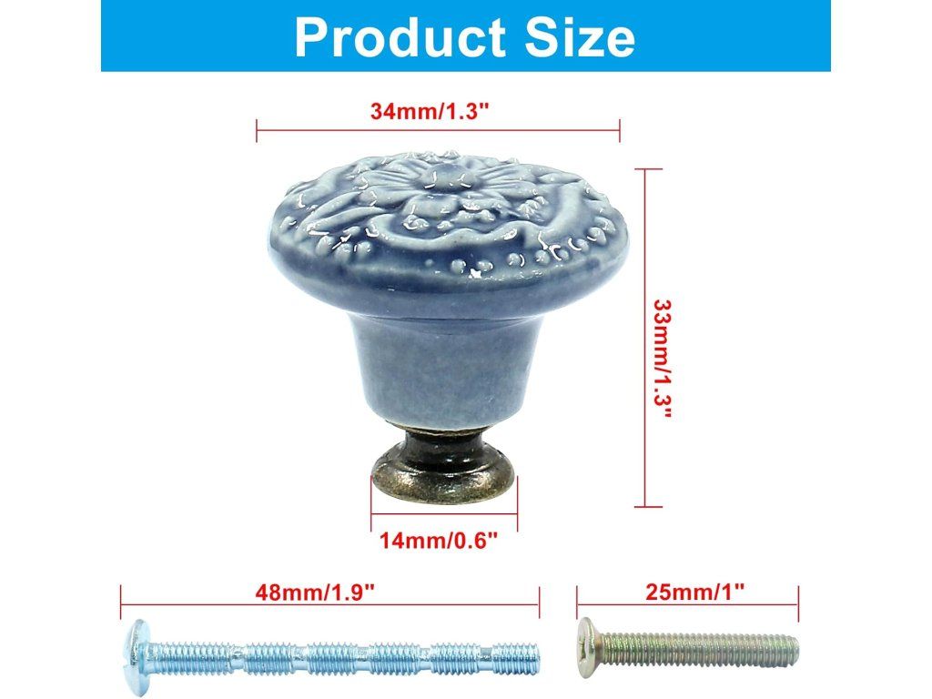 Oživte svůj nábytek jemným retro stylem — světle modré keramické úchytky s květinovým reliéfem dodají kuchyni, ložnici i předsíni stylový a útulný vzhled. Kvalitní keramika v kombinaci s kovovou základnou zajišťuje dlouhou životnost a pevné uchycení.