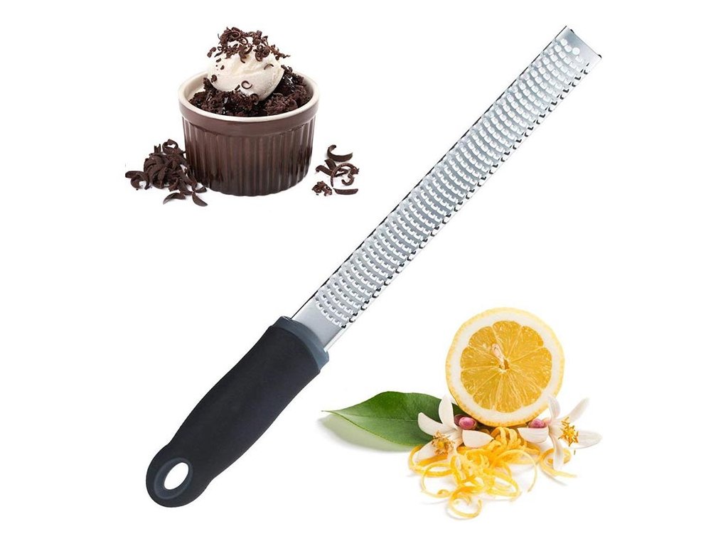 Toto struhadlo je ostré jako břitva, má ergonomickou rukojeť a je speciálně navrženo pro jemnější strouhání. Formát XL o velikosti minimálně 32 centimetrů umožňuje nastrouhat dlouhé kusy jediným pohybem ruky. Ideální pro všechny strouhací práce, nezbytnost každé kuchyně! Polevovací nůž: ▶ Vhodné pro tvrdé a měkké přísady ▶ Ergonomická a pohodlná rukojeť ▶ Ostrý jako břitva: laserovaný povrch čepele Ostrý jako břitva Škrabky jsou vyrobeny z nerezové oceli 18/8 a mají extra ostrý laserový povrch čepele. Ergonomická rukojeť zajišťuje, že toto struhadlo má ideální úchop a je velmi pohodlné. Struhadlo je vhodné na tvrdé i měkké suroviny jako je; tvrdé sýry, citrusové plody, čokoláda, mrkev, zázvor, ořechy, paprika, cibule atd.