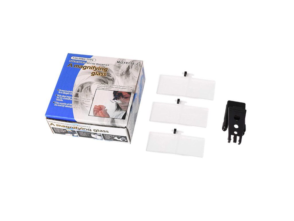 Praktická klipová lupa s tromi úrovňami zväčšenia (1,5×, 2,5×, 3,5×) na detailnú prácu. Nasadí sa priamo na obruby okuliarov, vyrobená z odolného ABS plastu a kovu. Ideálne pre elektroniku, kozmetiku, viazanie mušiek a precízne opravy. Rozmery 72×75×45 mm, hmotnosť iba 200g.