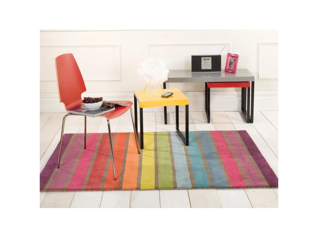 Luxusný ručne tkaný vlnený koberec Candy od značky Flair Rugs v rozmeroch 80x150 cm. Vyrobený zo 100% vlny s nízkym vlasom (9 mm) a bavlnenou zadnou stranou. Farebný design s obšitými okrajmi a strednou hustotou 2000 g/m². Vhodný na podlahové vykurovanie, ľahko udržiavateľný.