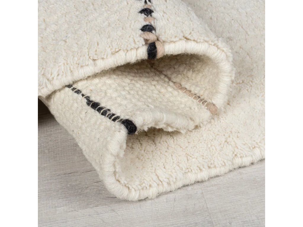 Vzhledem k minimalistickému provedení ozvláštěném o všívané smyčkové detaily se tento koberec hodí především do neutrálně laděného prostoru. O jeho vysoké kvalitě vypovídá ruční výroba, a to výhradně z přírodních vlněných vláken. Zvolený materiál mu propůjčuje mimořádnou měkkost, odolnost a přirozenou tepelnou a zvukovou izolaci. Snadnou údržbu pak umocňuje nízký vlas.