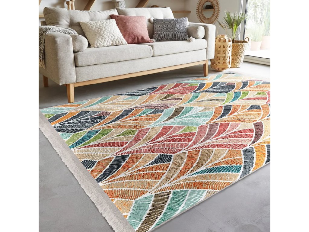Barva Barevná Délka 180 cm Šířka 120 cm Váha 1.8 kg Tvar Obdélníkový Tloušťka 0.4 cm Složení a druh materiálu Polyester Specifikace materiálu 100% polyester Materiál zadní strany Guma Hustota materiálu Střední Hustota 1900 g/m² Délka vlasu koberce Bez vlasu Péče Perte na 30 stupňů, nežehlit, lze prát v pračce, nepoužívejte chemické bělidlo, pravidelně vysávejte Vlastnost Vhodný na podlahové vytápění, protiskluzový, pratelný, antialergenní, vhodné pro robotické vysavače Typ zakončení S třásněmi Způsob výroby Strojově tkaný Úprava Digitální potisk, lesklý