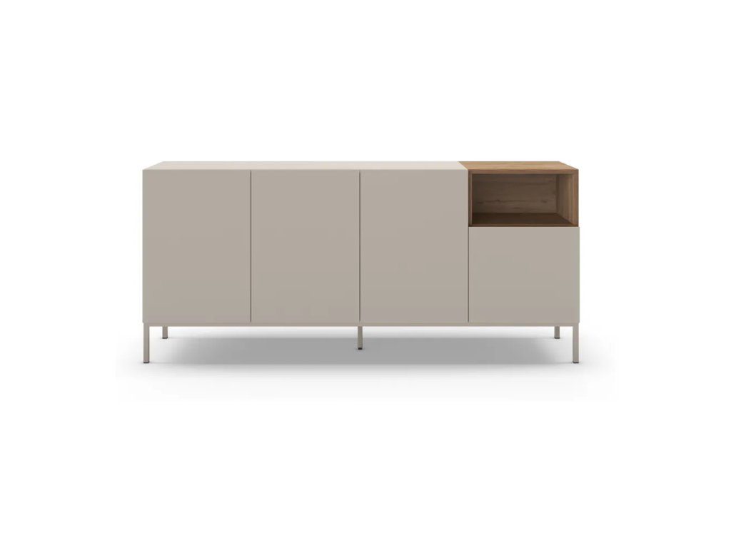 Barva Krémová Šířka 180 cm Výška 80 cm Hloubka 42 cm Váha 54.9 kg Výška nohou 17.5 cm Materiál MDF Dekor Dub Barva dřeva Světlé dřevo Povrchová úprava Melamin Materiál nohou Kov Péče Čistit vlhkým hadříkem nebo houbičkou, nepouživat agresivní a abrazivní čističe