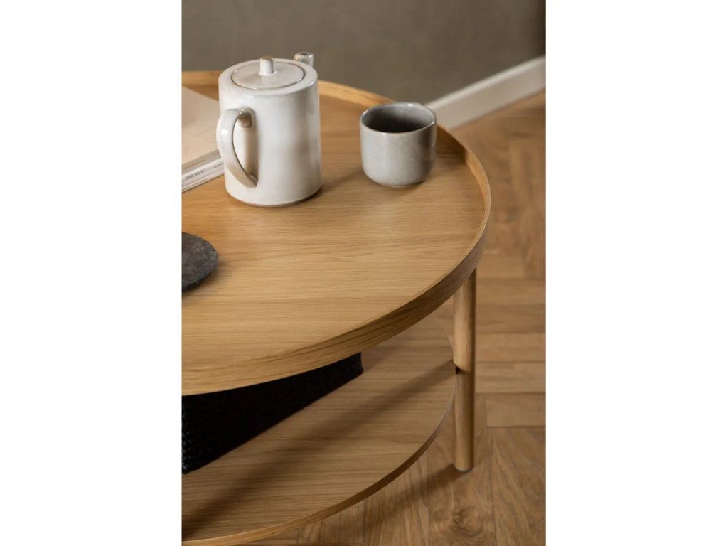 Barva Přírodní Průměr 80 cm Výška 42 cm Váha 11.7 kg Nosnost 20 kg Tvar Kulatý Tloušťka 3.5 cm Materiál desky stolu MDF Dekor Dub Barva dřeva Světlé dřevo Povrchová úprava Dýha, lak Materiál nohou Masiv dub Barva nohou Světlé dřevo Materiál poliček MDF Povrchová úprava poliček Dýha Vlastnosti S poličkami Péče Čistit vlhkým hadříkem nebo houbičkou, nepouživat agresivní a abrazivní čističe