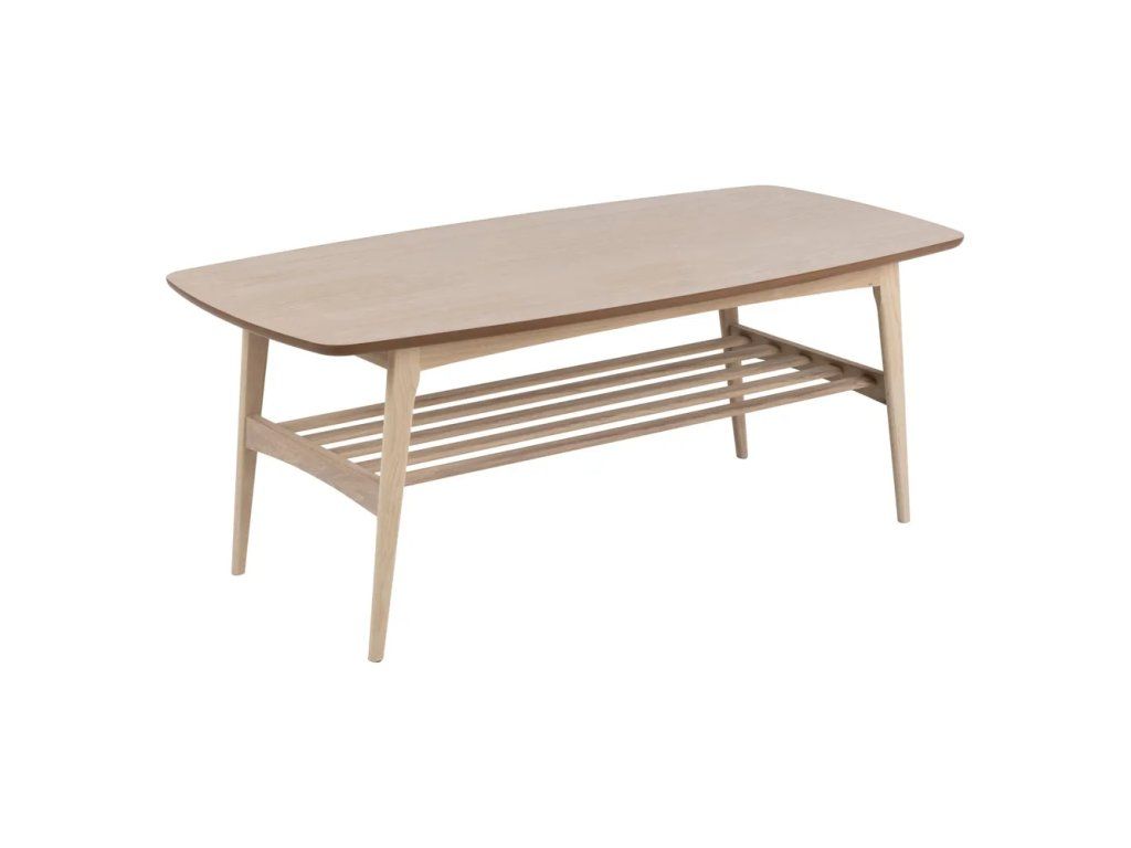 V dekore duba, v prírodnej farbe, 60x120 cm, výška 47 cm. POŠKODENÁ HRANA STOLA VIZ FOTO.