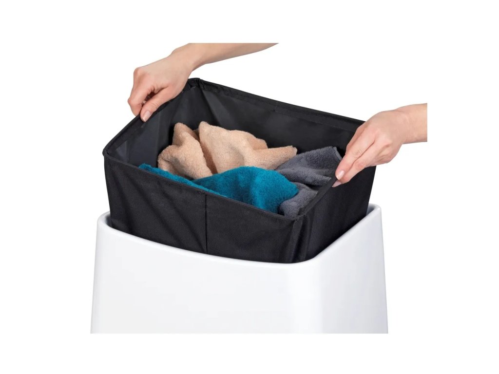 Barva Bílá Objem 33 l Délka 33 cm Šířka 45 cm Výška 48 cm Váha 2 kg Materiál Plast Specifický materiál Polyester Specifikace materiálu 100% polyester Péče Otírejte suchým hadříkem