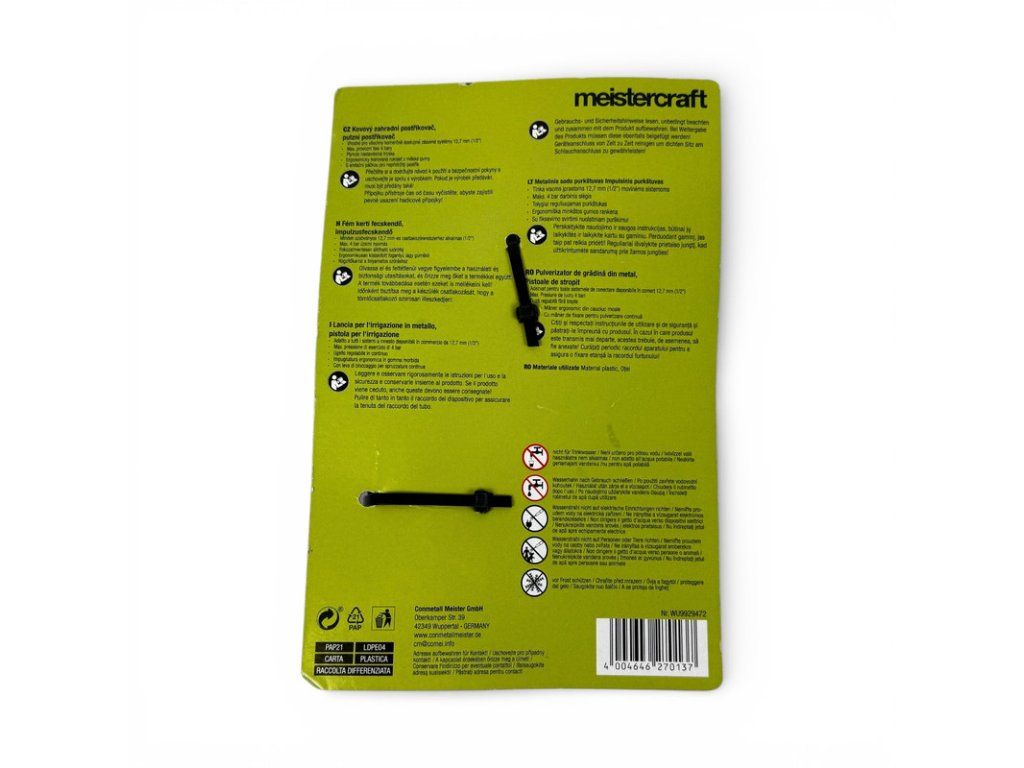 Kovový záhradný postrekovač Meistercraft s ergonomickou rukoväťou z mäkkej gumy a plynulo nastaviteľnou tryskou. Vhodný pre všetky zásuvné systémy 12,7 mm, maximálny prevádzkový tlak 4 bary. S praktickou aretačnou páčkou pre nepretržitý postrek. Ideálne na zavlažovanie záhrady a starostlivosť o rastliny.