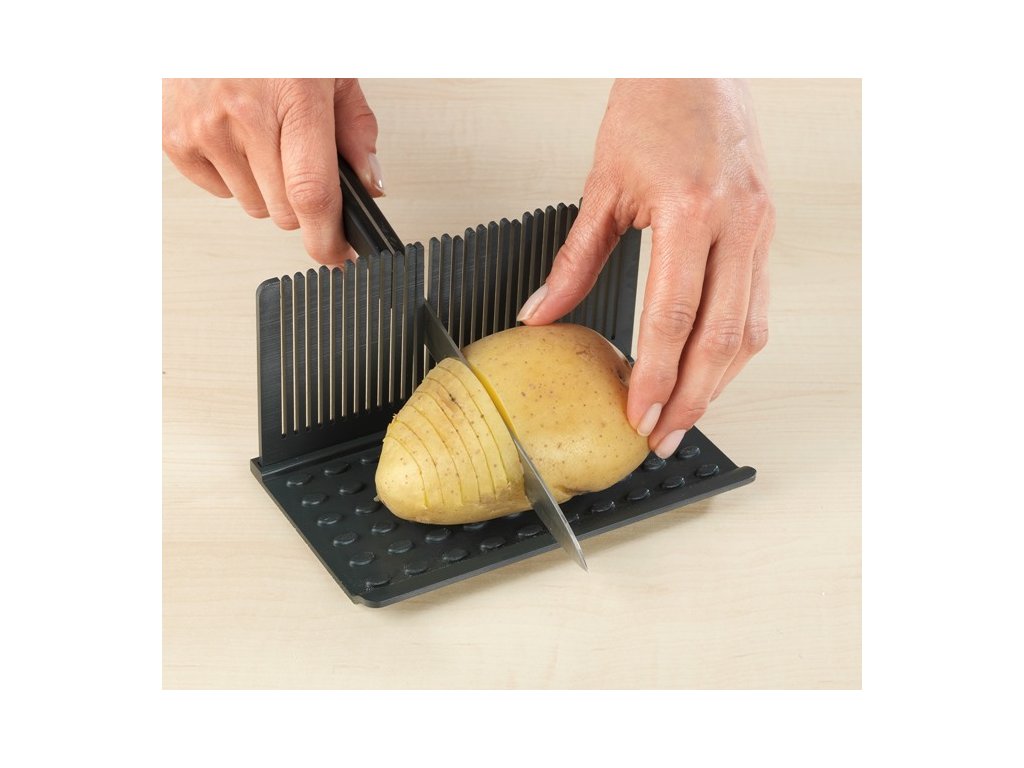 Tento rezací nástroj nakrája zemiaky, zeleninu, ovocie, kúsky mäsa, bagety a mnoho ďalších produktov na krásne plátky. Krájač má každých 5 zubov kratší zub, čo uľahčuje počítanie. Vďaka výstupkom na ležacej ploche vaše jedlo