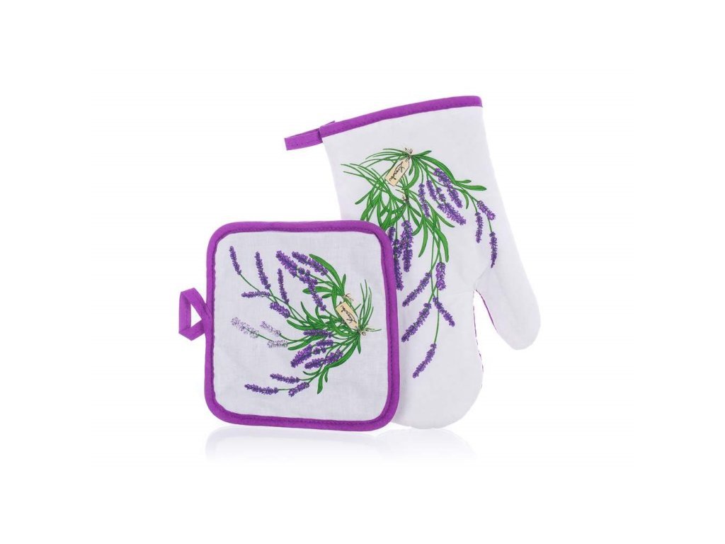 Sada 2 kusov bavlnených kuchynských chňapiek s dekórom LAVENDER.